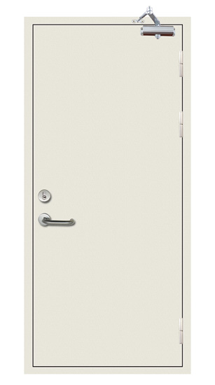 二、选材说明:门框、门扇采用进口或国产优质冷轧钢板、电镀锌钢板或不锈钢板制造,内填优质耐火材料珍珠岩,表面采用静电喷塑处理,配套防火锁(或管井锁)、钢质镀锌(或不锈钢)防火合页、闭门器等。